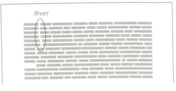 Sebuah bentuk yang terjadi karena adanya jarak antar-kata dari beberapa baris yang berurutan dan membentuk sebuah bidang putih seperti alur sungai.